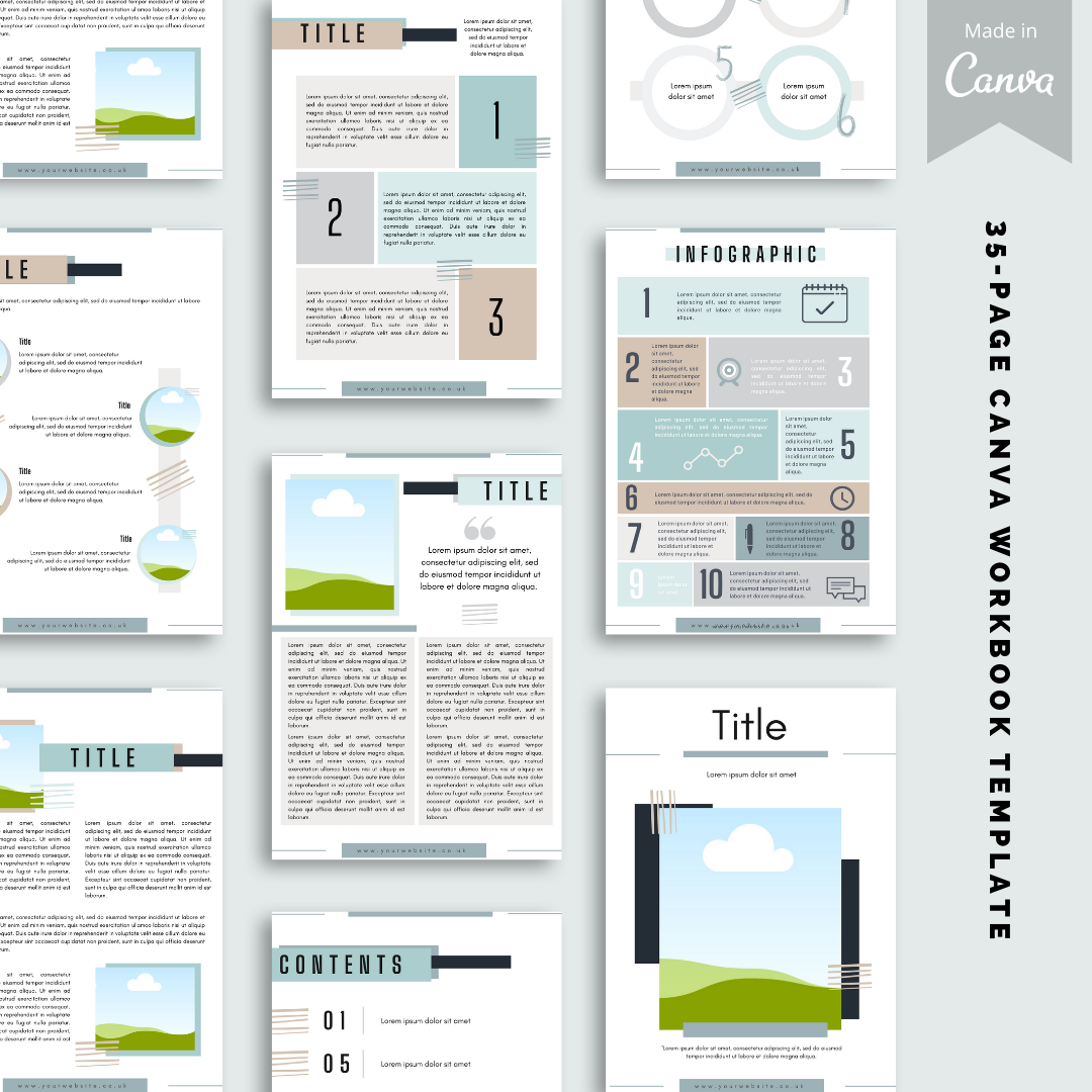 This 35-page Canva workbook template consists of both content pages as well as worksheets, making it the perfect online course resource or ebook.
